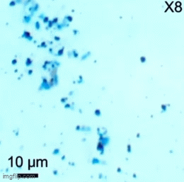 1. When added to water, Prussian blue pigment disperses into microscopic particles. These particles act like magnets, binding to nanoplastics.