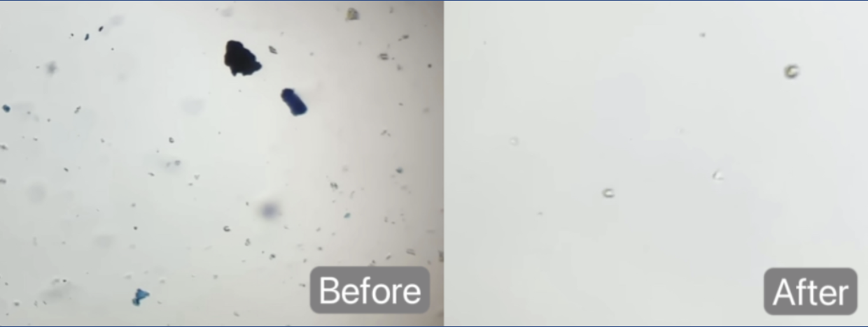After: 100% nanoplastics removed, leaving only pure, fresh water.