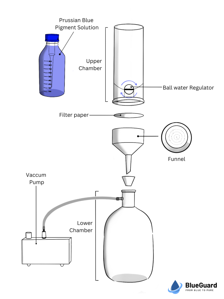 After filtration, the Prussian blue pigment, along with the trapped nanoplastics, remains on the filter paper. Once removed, the pigment can be repurposed immediately as blue paint, eliminating waste and promoting sustainability. This upcycling process transforms what was once contamination into a valuable and creative material.